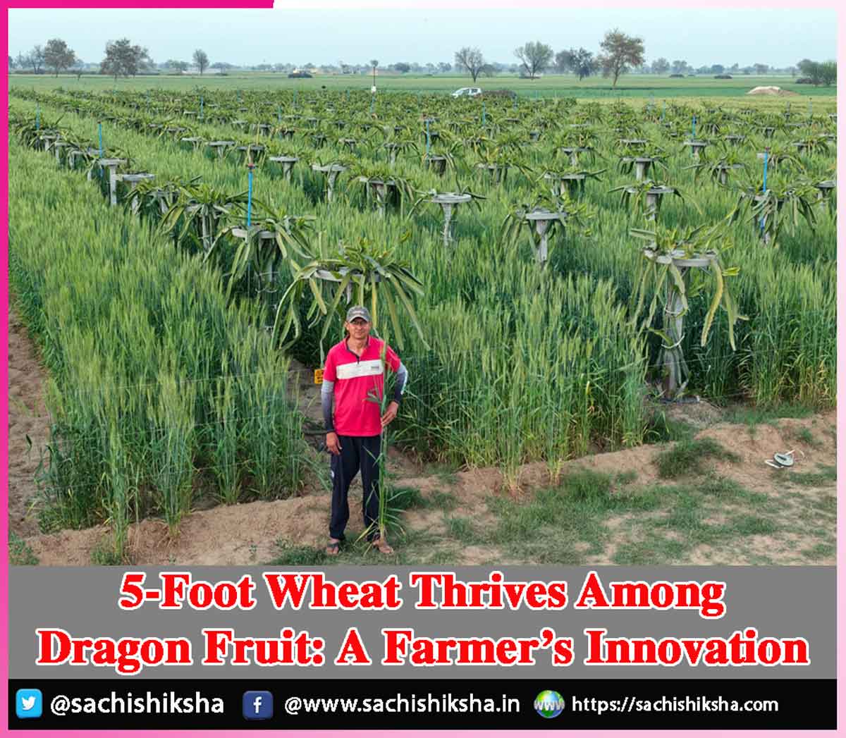 Sunil Baradwal, a progressive farmer from Daiyad (Fatehabad), a village near the Rajasthan border, has set a unique example of agricultural innovation. By growing wheat among dragon fruit plants, he has not only reduced costs but also introduced a new model for increasing farmers’ income.